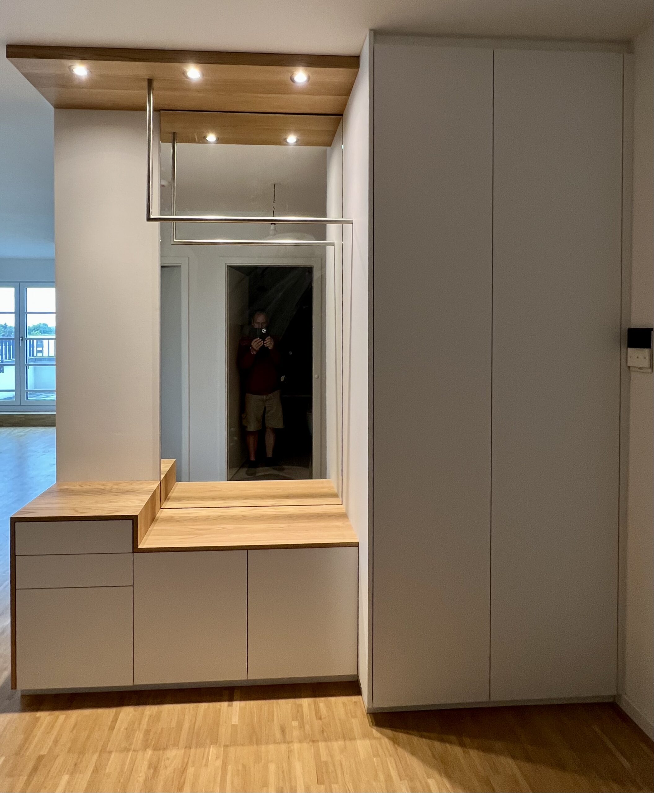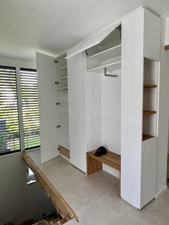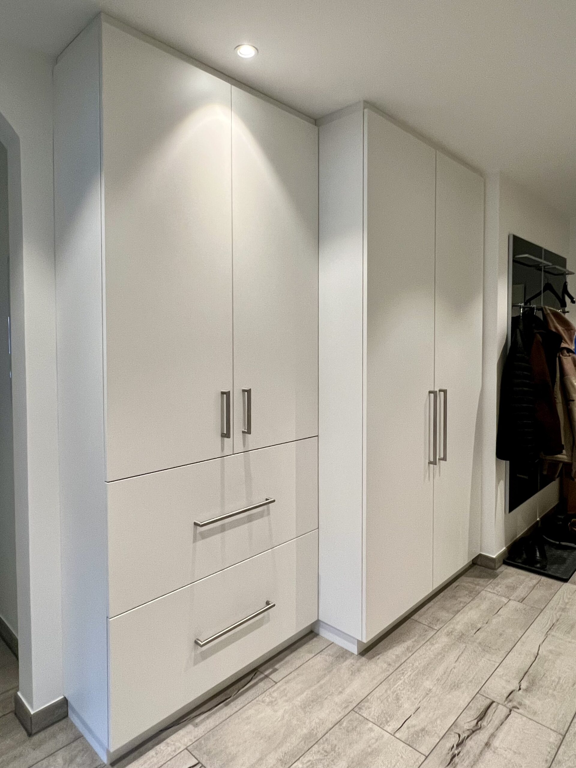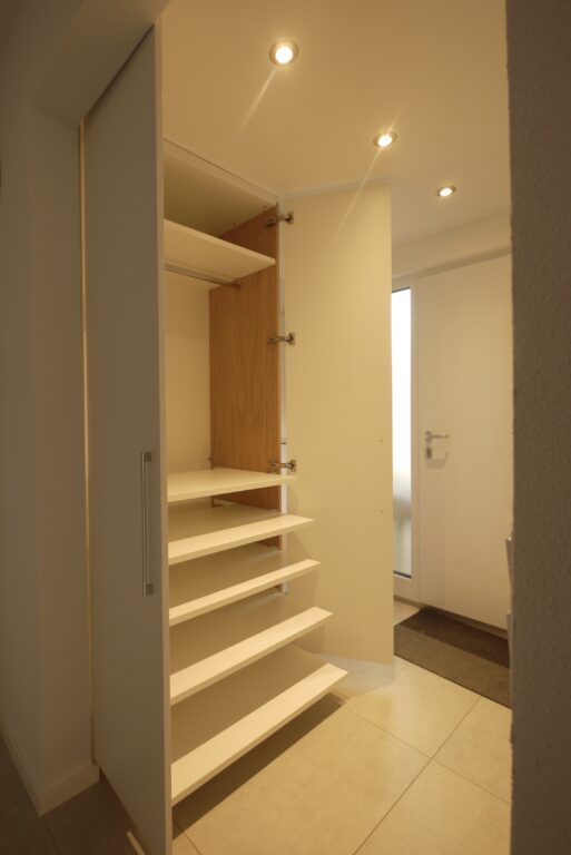 Der erste Eindruck zählt. Für einen perfekten Eingangsbereich bieten wir Ihnen individuelle Lösungen, egal ob ein kleiner Schrank in der Wandnische oder doch eine freistehende Garderobe mehr in Ihr Zuhause passt.