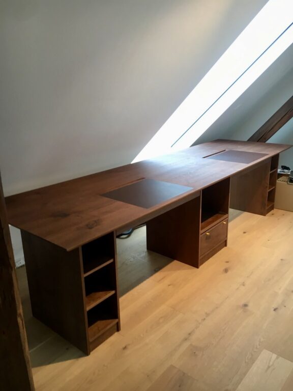 Wir fertigen sowohl individuelle Schreibtische ganz nach Ihren Wünschen für Ihr home-office, als auch Schreibtischplatten für höhenverstellbare Schreibtische, beispielsweise für Büros.