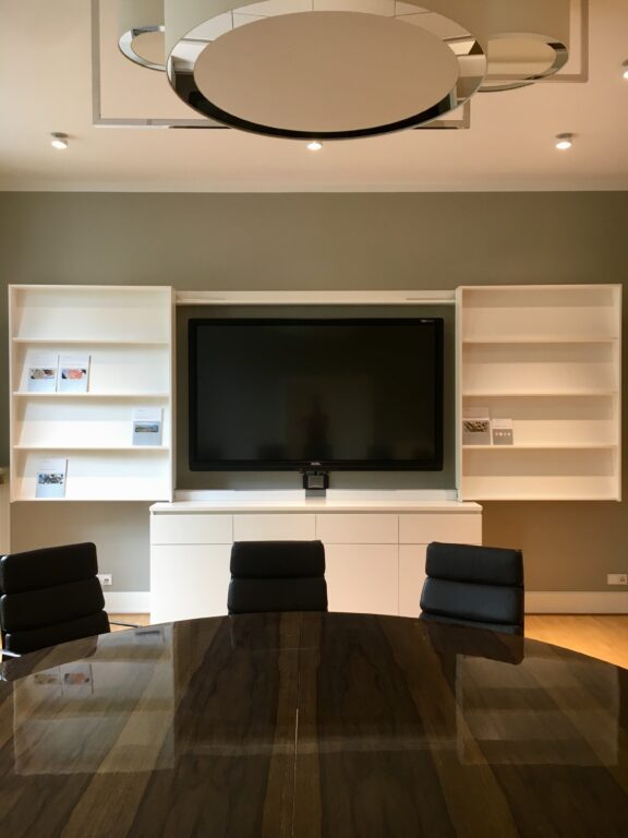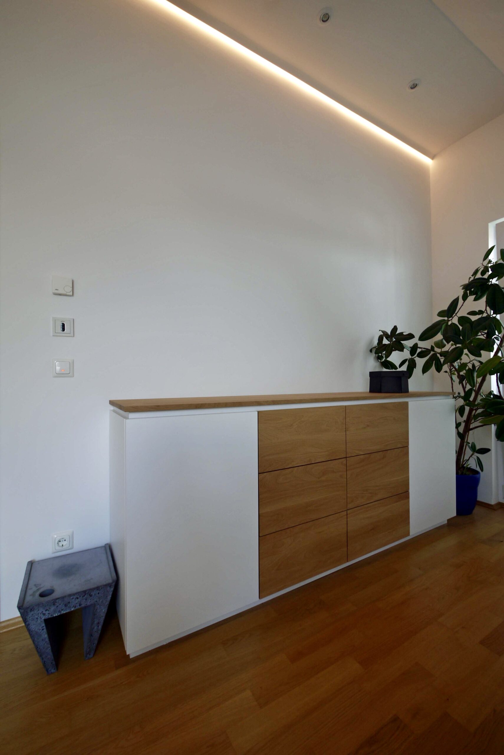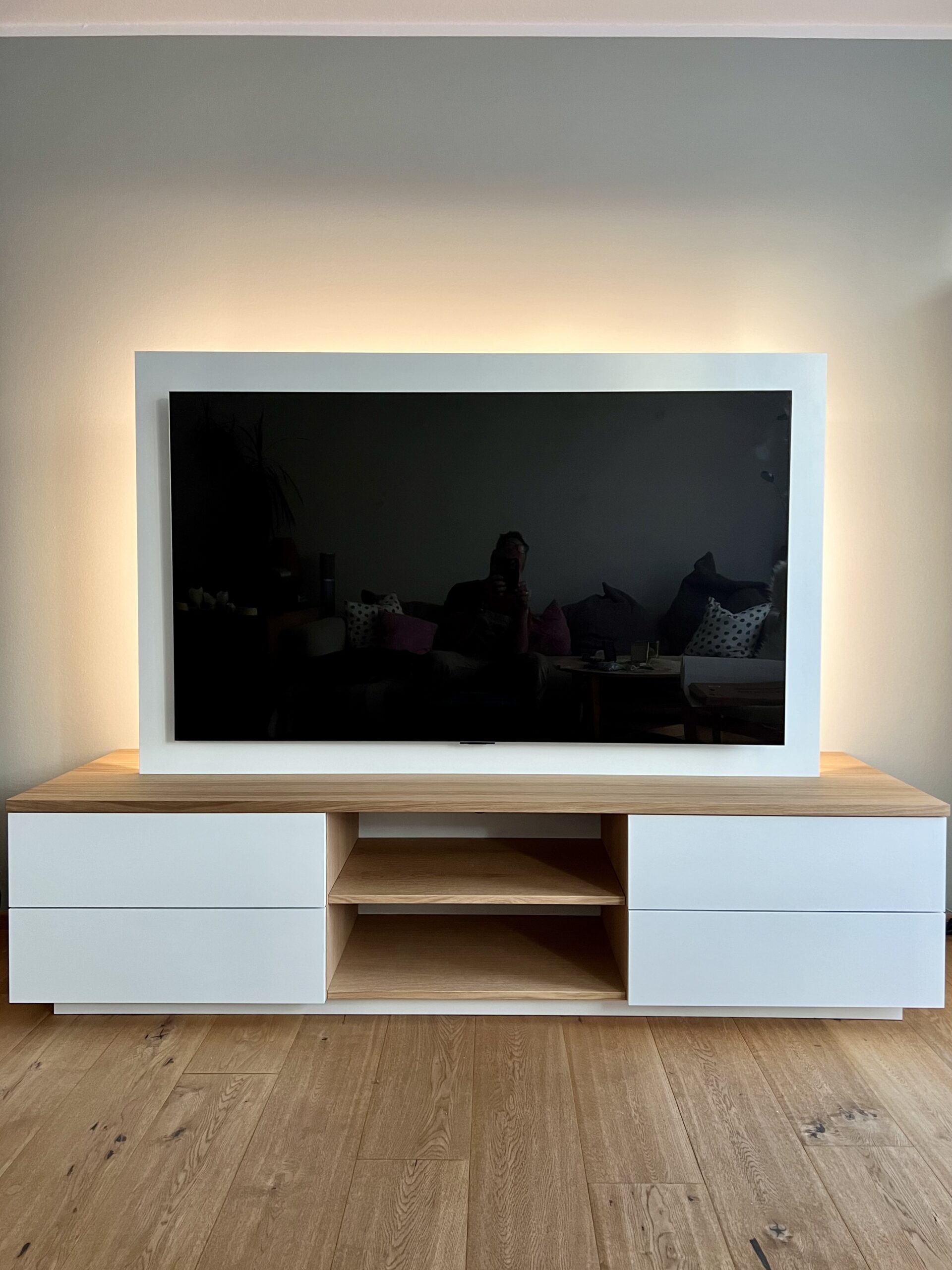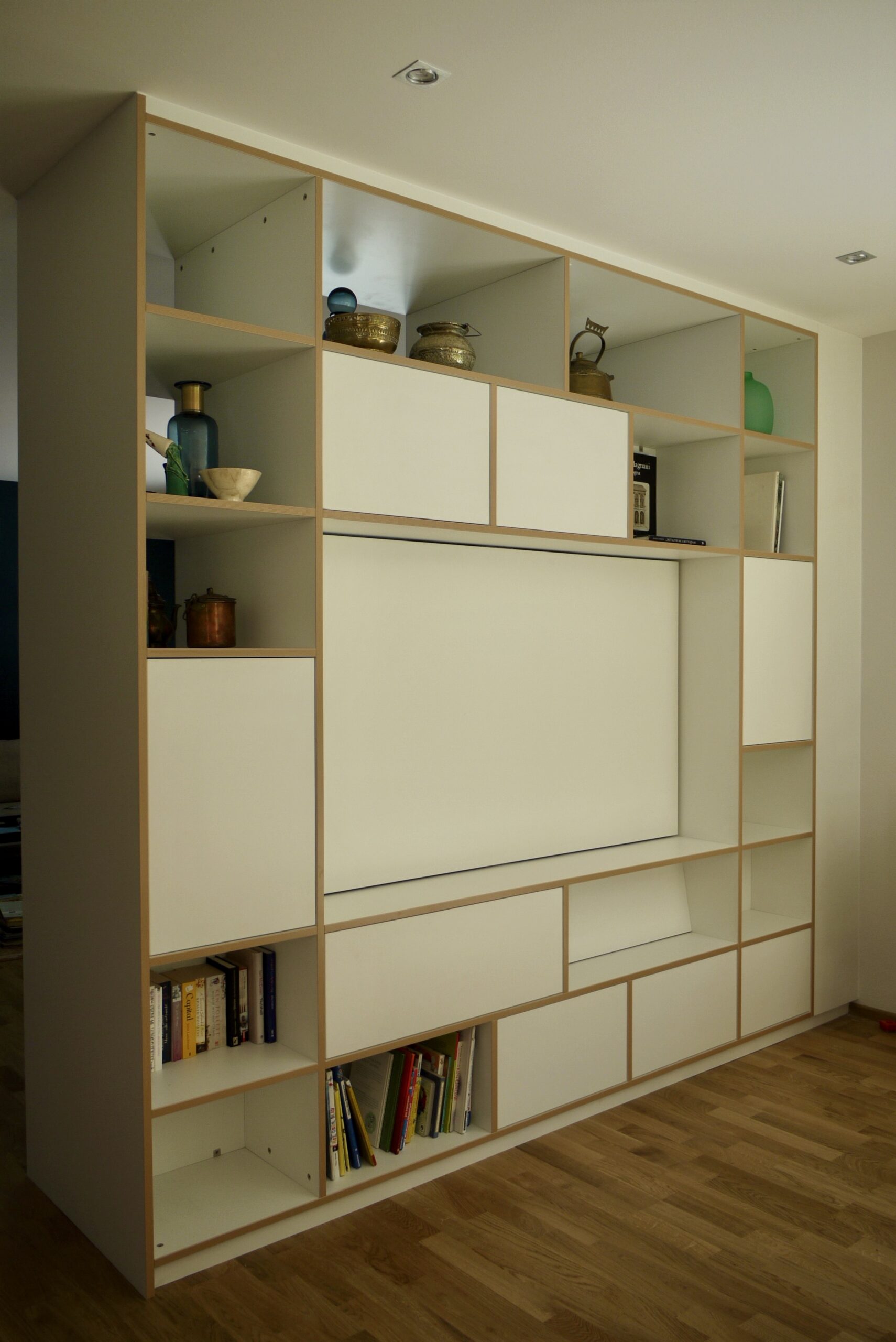 Für den Wohnbereich fertigen wir mit kompletten Wohnwänden optisch ansprechende Regallösungen mit integrierten Hifi- und/oder Home-Entertainment-Komponenten.