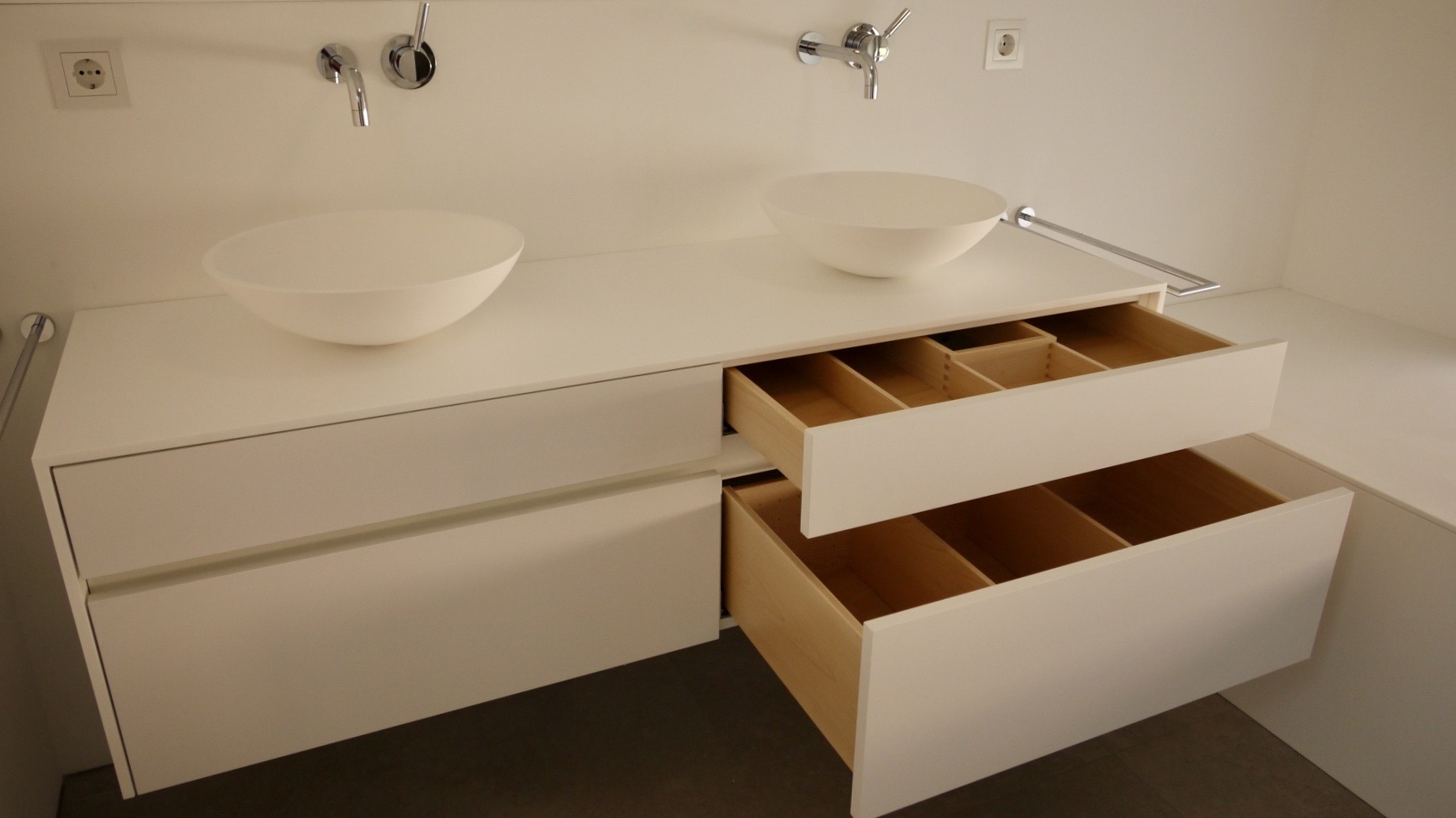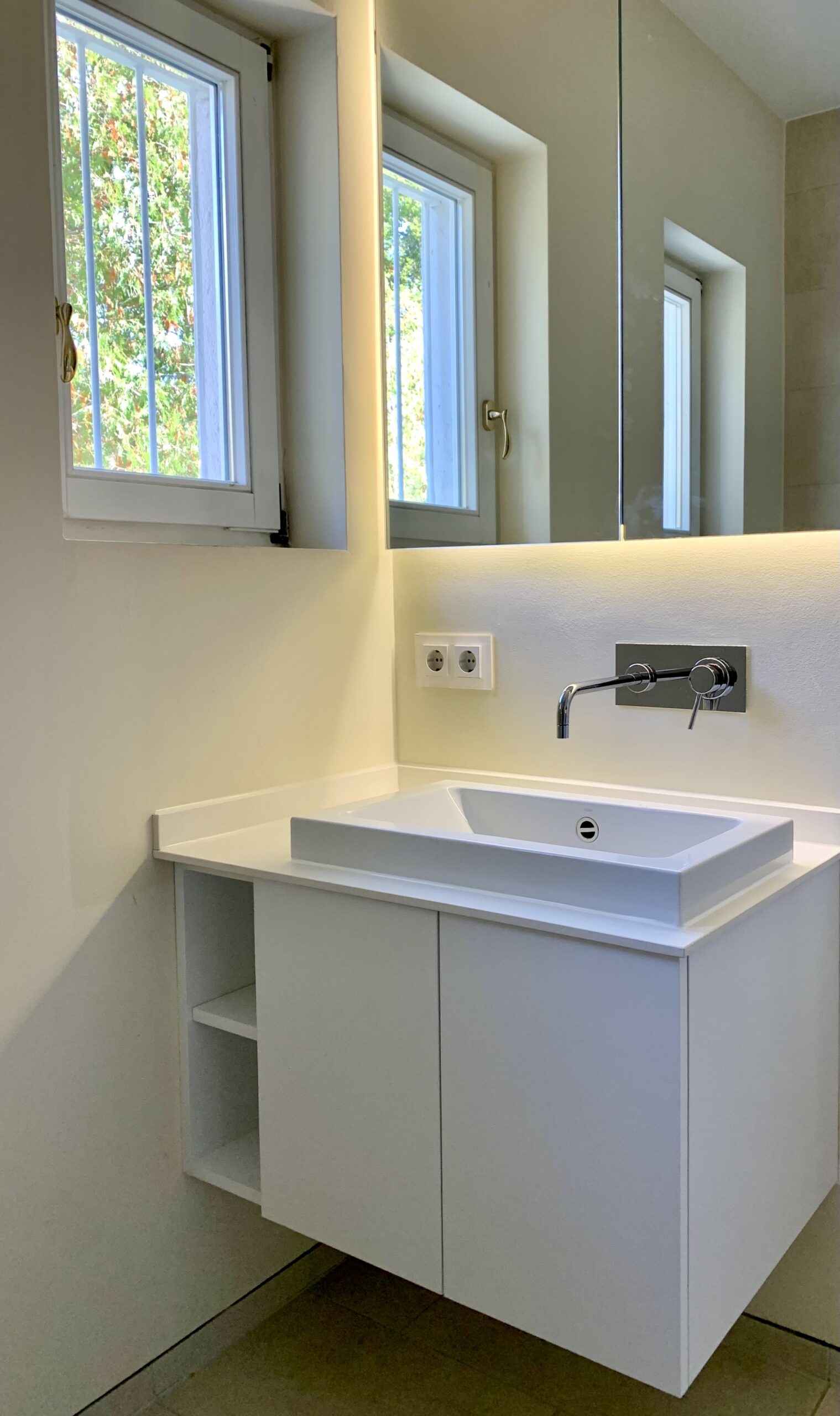 Für Ihr Bad bieten wir den perfekten Einbau: Einbau- und Nischenschränke sowie Waschtische mit individuellem Innenleben.