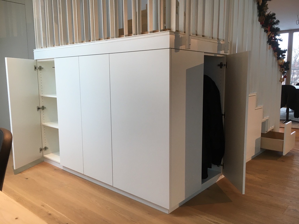 Schränke die den Raum gliedern und ihm ein neues Gesicht geben. Lösungen für Unterbringungsprobleme und effizienten Stauraum. Ob unter einer Treppe, in einer Wandnische oder unter einer Dachschräge, alles wird für Sie gefertigt und eingepasst.