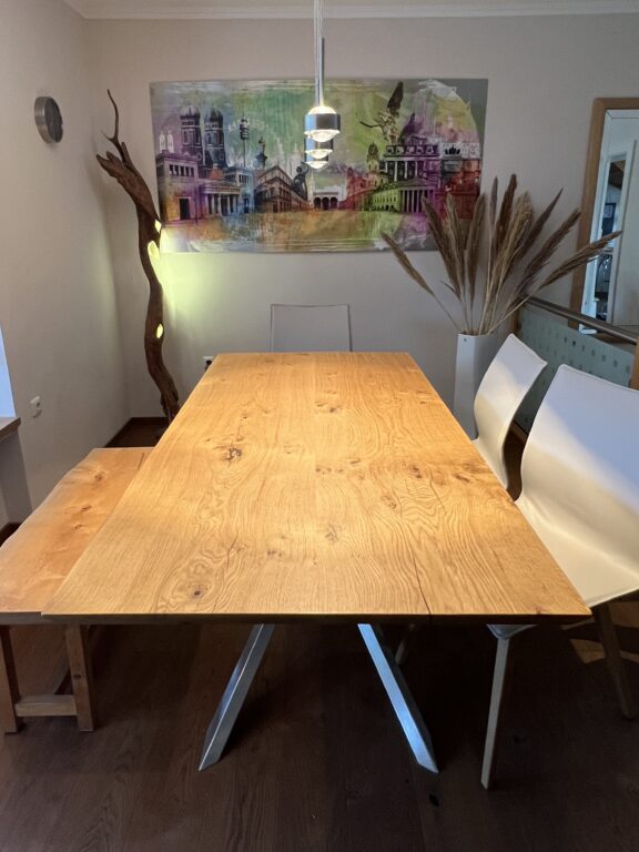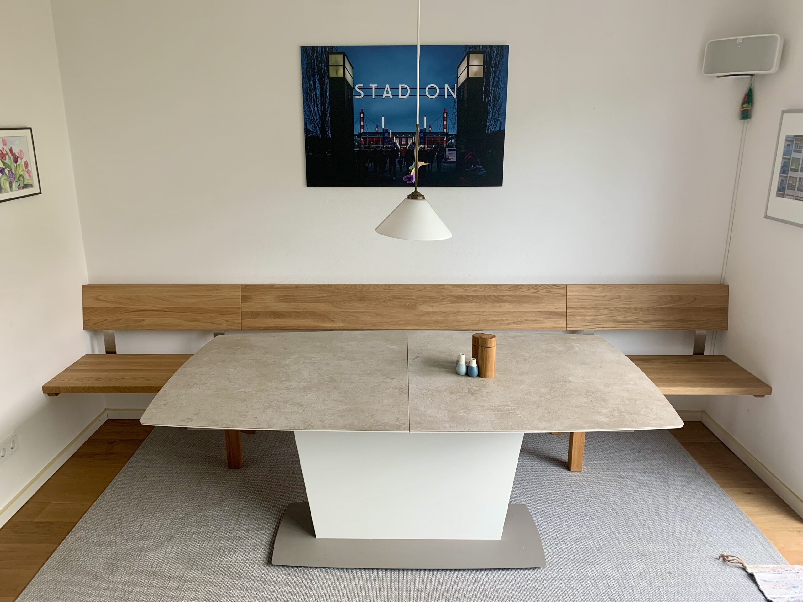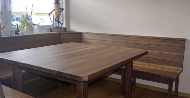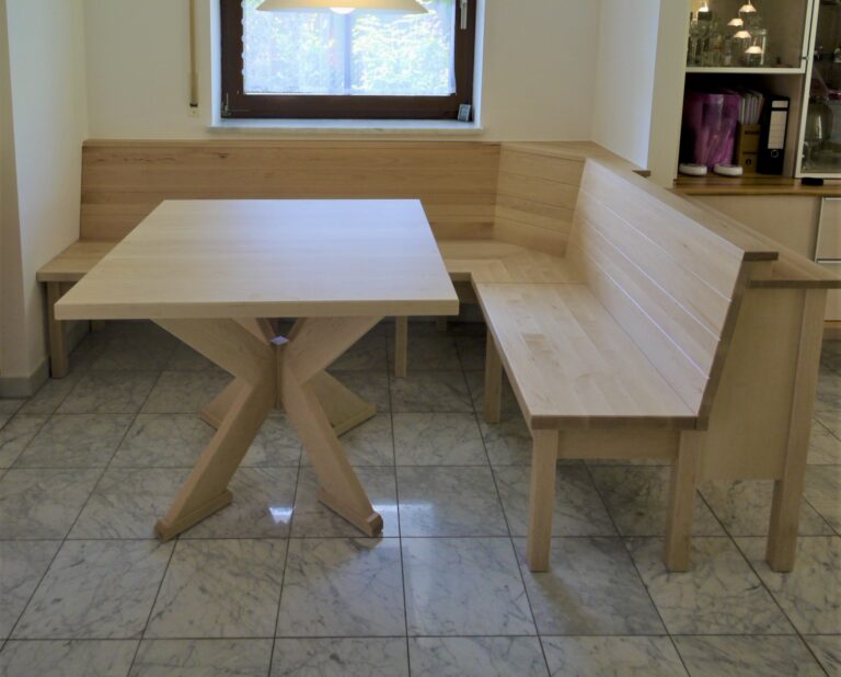 Bei uns bekommen Sie Esstische in Massivholz und passende Eckbänke, auf Wunsch auch gerne mit einem praktischen verstecktem Fach unter der Sitzfläche. Perfekt für Ihr Esszimmer zum Wohlfühlen!